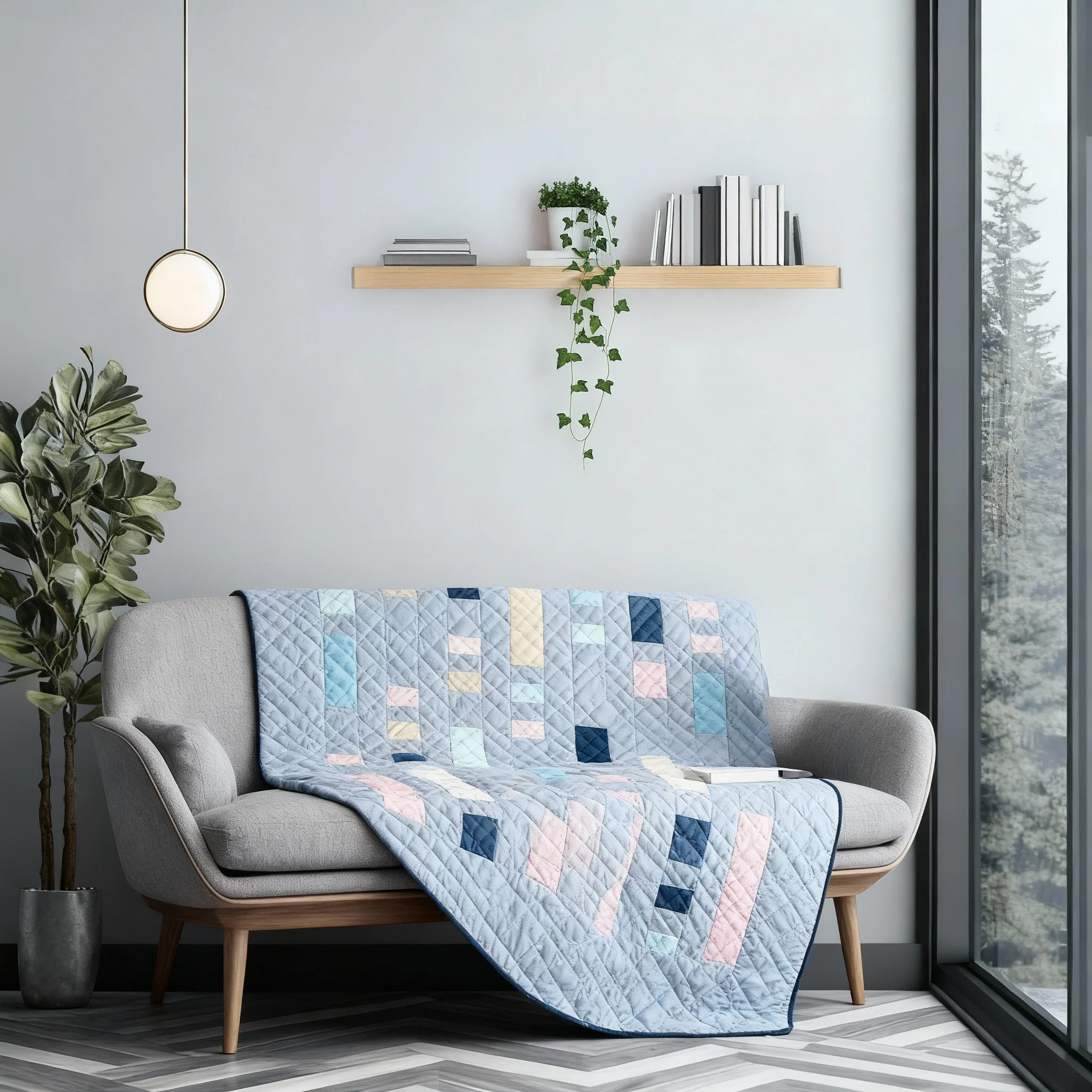 This beauty is pure rectangles and squares—yep, that's it! No curves to curse at, no tricky matching points to wrestle. Just crisp, clean shapes dancing across a minimalist background. It's the quilt equivalent of "I woke up like this"—effortlessly chic, even if you're still Googling "how to wind a bobbin."